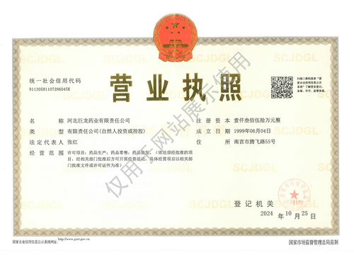 版權(quán)所有:河北巨龍藥業(yè)有限責任公司 冀ICP備19023826號-1   1733465040158507.png  冀公網(wǎng)安備13058102000452號 證書編號 :(冀)-非經(jīng)營性-XXXX-XXXX